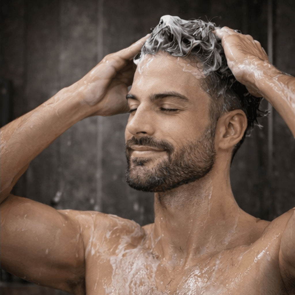 - Aplică șamponul pe părul umed.