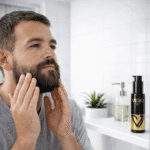 2. Masează delicat până când produsul este complet absorbit, concentrându-te pe pielea de sub barbă pentru a preveni uscăciunea și mătreața.